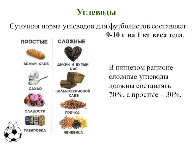 В пищевом рационе сложные углеводы должны составлять 70%, а простые – 30%.