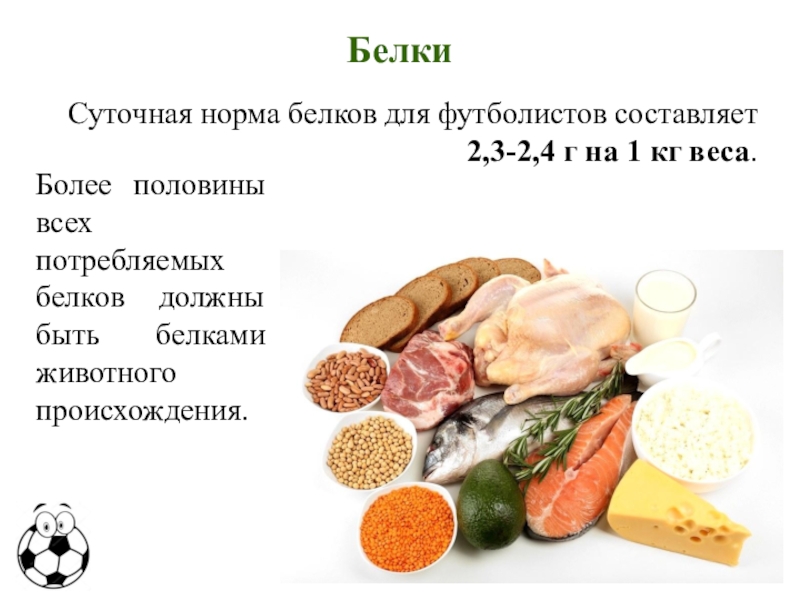 Более половины всех потребляемых белков должны быть белками животного происхождения.