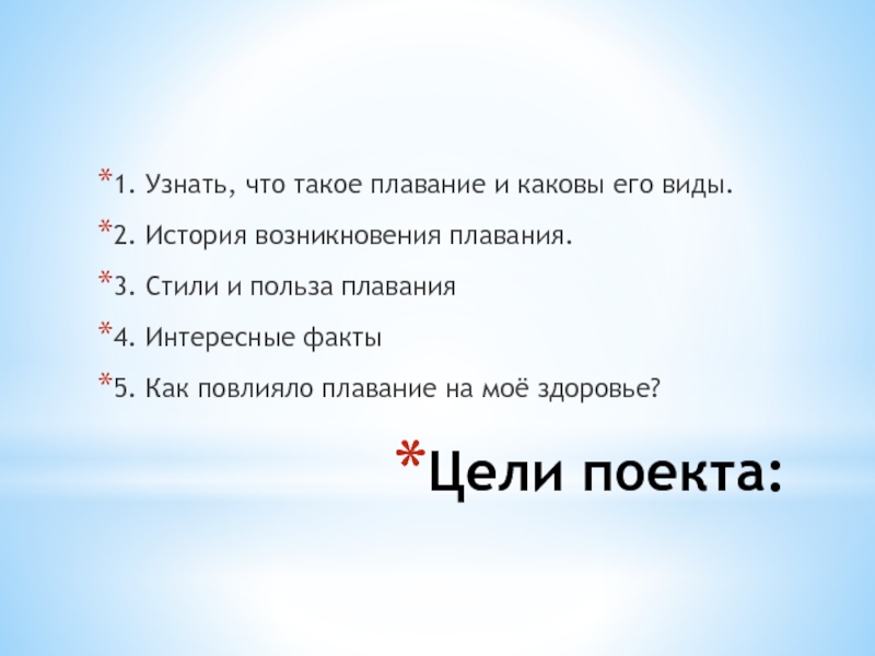 1. Узнать, что такое плавание и каковы его виды.