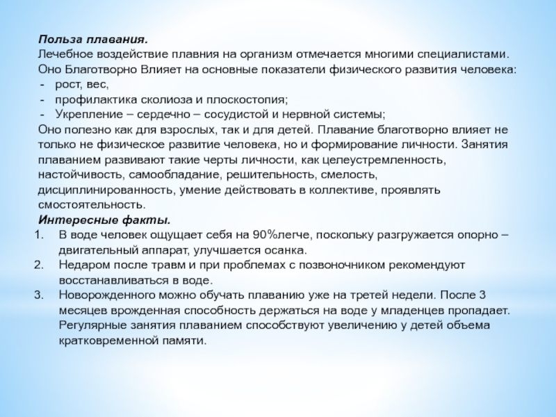 Слайд 14Польза плавания.