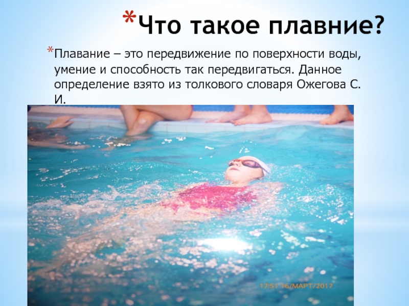 Плавание – это передвижение по поверхности воды, умение и