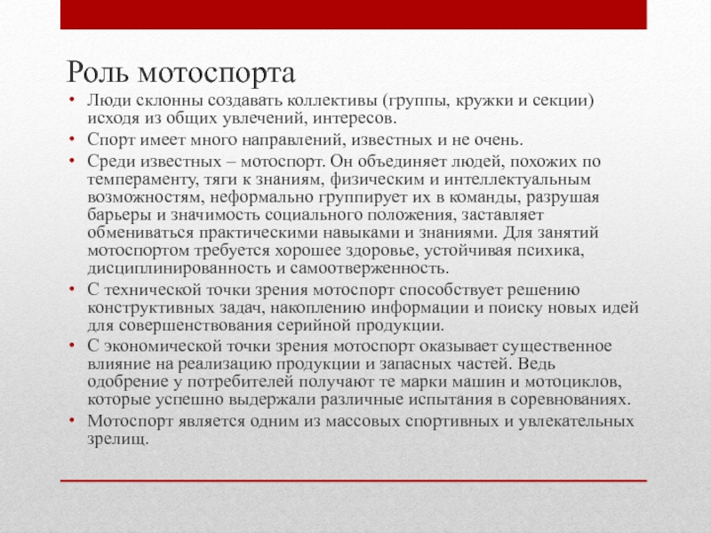 Слайд 9Роль мотоспорта