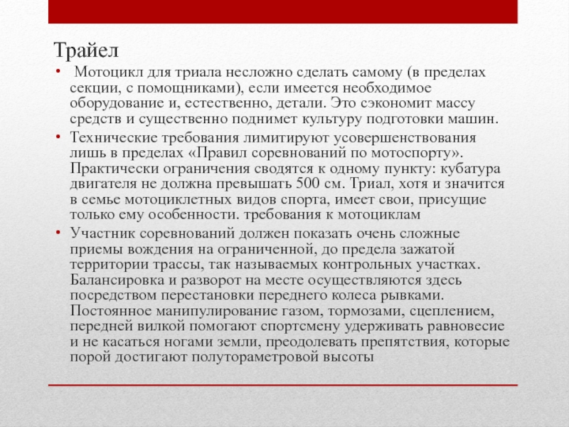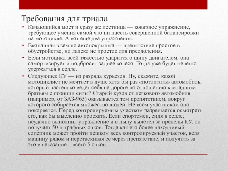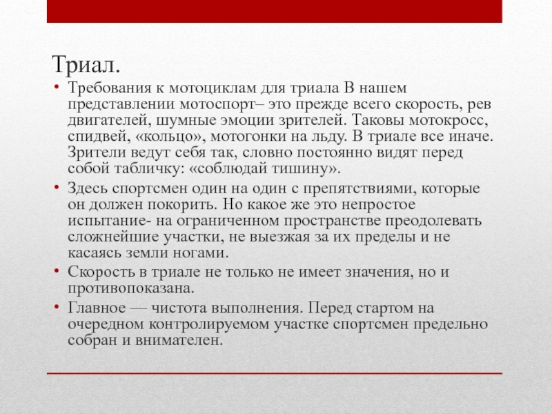 Требования к мотоциклам для триала В нашем представлении мотоспорт– это