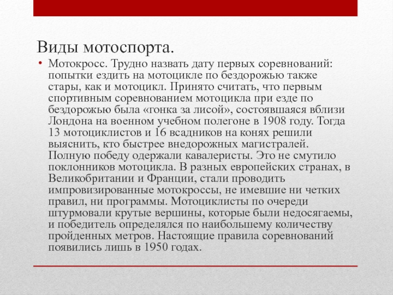Слайд 11О мотоспорте