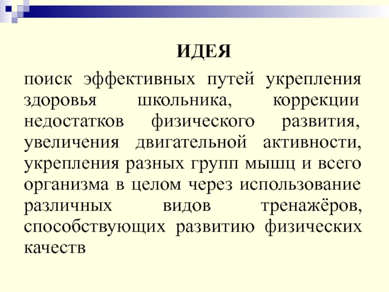 поиск эффективных путей укрепления здоровья школьника, коррекции недостатков физического