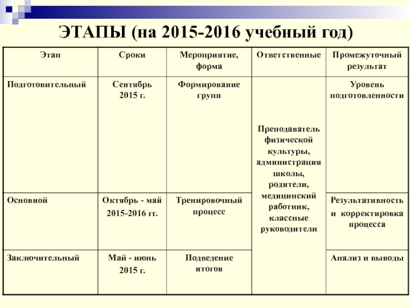 Слайд 14ЭТАПЫ (на 2015-2016 учебный год)