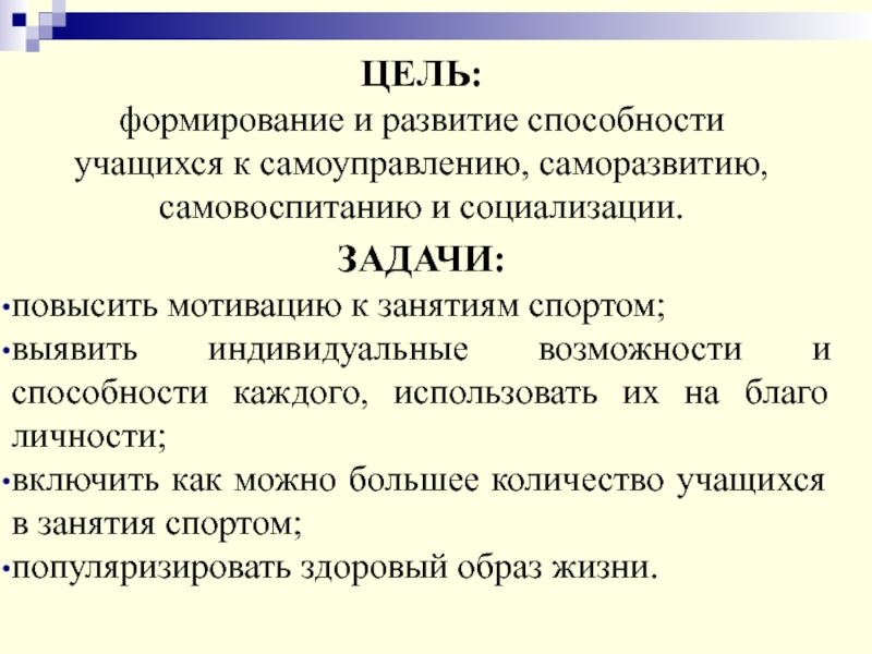 развитие у школьников интереса к самостоятельным занятиям физическими упражнениями;