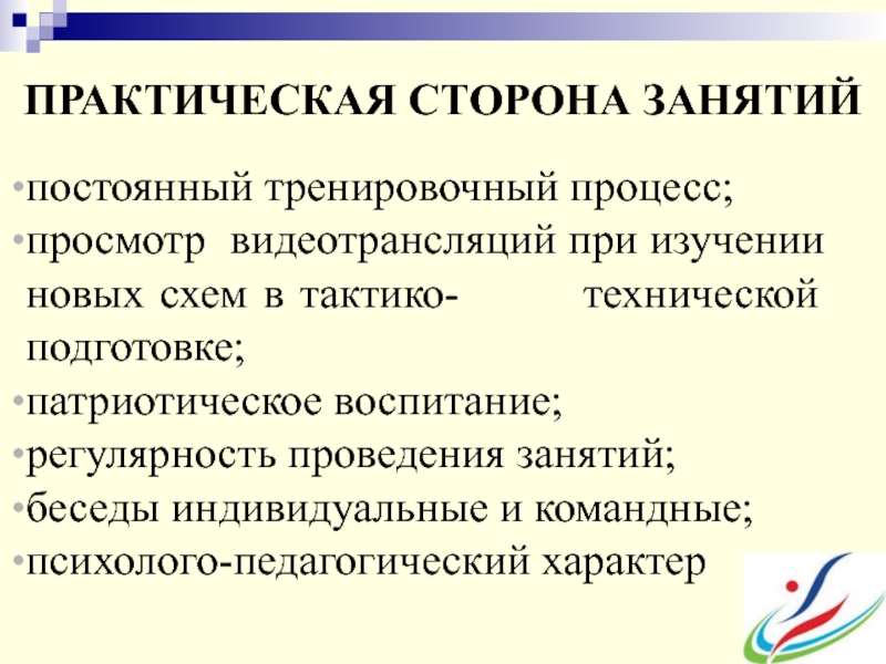 Слайд 16ПРАКТИЧЕСКАЯ СТОРОНА ЗАНЯТИЙ