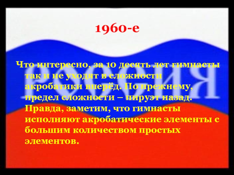 Если прогресс в акробатике 60-х годов был незаметен, то в 70-е