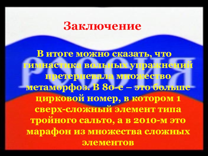 В итоге можно сказать, что гимнастика вольных упражнений претерпевала множество метаморфоз.