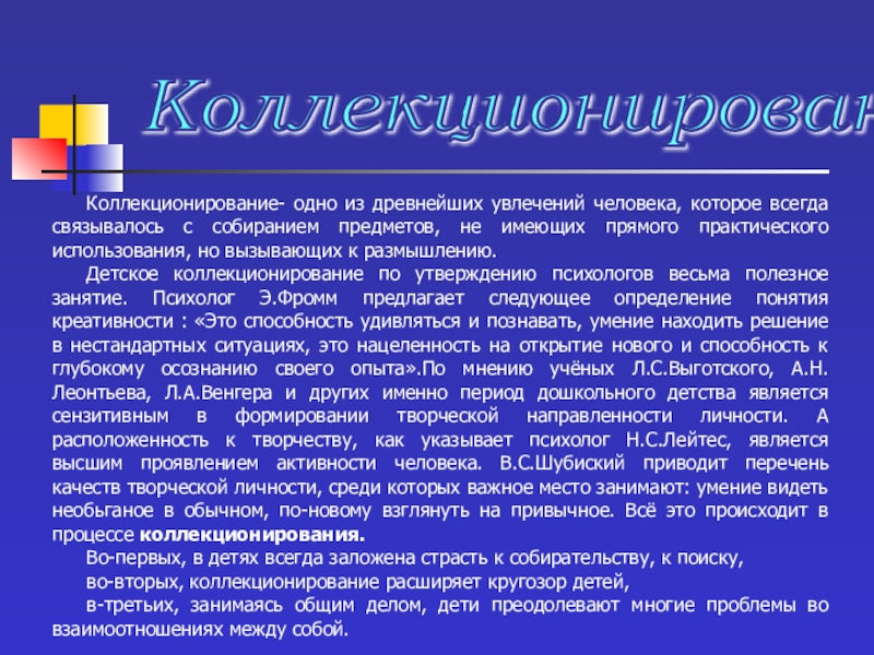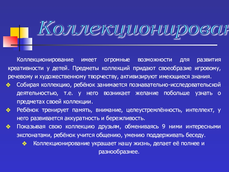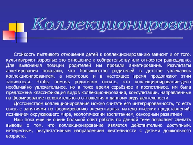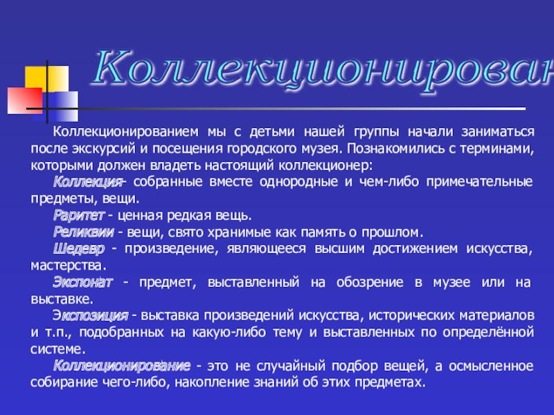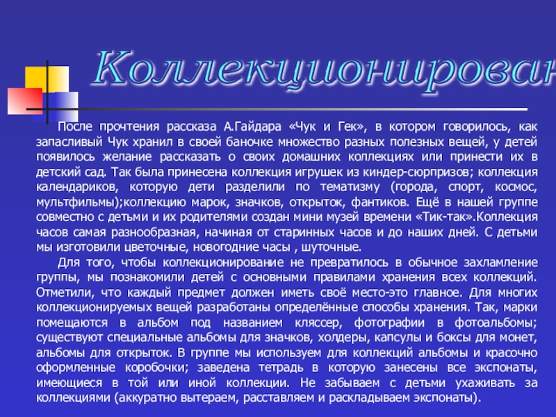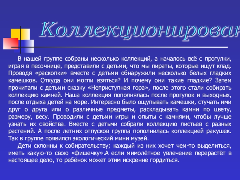 2. Способствовать созданию домашних мини-музеев и коллекций различных предметов.