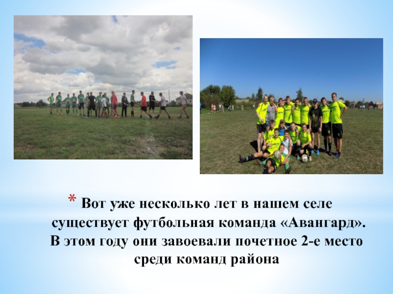 Слайд 13Вот уже несколько лет в нашем селе существует футбольная команда «Авангард».