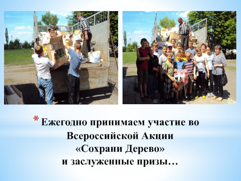 Слайд 10Ежегодно принимаем участие во Всероссийской Акции «Сохрани Дерево» и заслуженные призы…