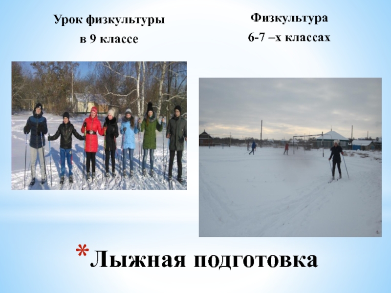Урок физкультуры в 9 классеФизкультура 6-7 –х классахЛыжная подготовка