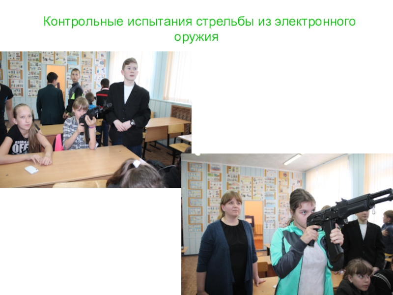 Слайд 9 Контрольные испытания стрельбы из электронного оружия