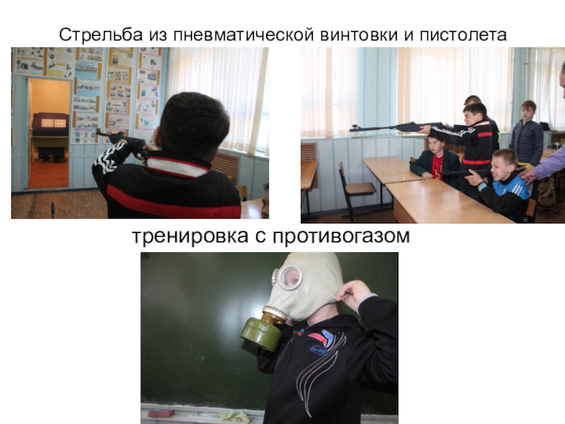 Стрельба из пневматической винтовки и пистолета       тренировка с противогазом