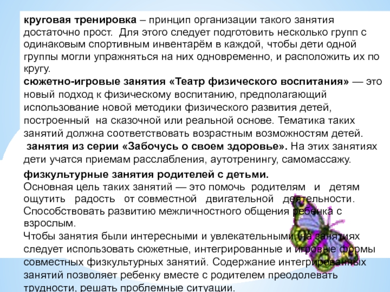 Чтобы занятия были интересными и увлекательными, на занятиях следует использовать сюжетные, интегрированные и игровые формы совместных физкультурных занятий. Содержание интегрированных занятий позволяет ребенку вместе с родителем преодолевать трудности, решать проблемные ситуации.