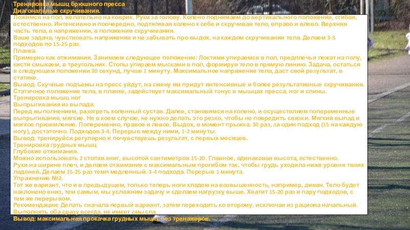Вывод: максимальная прокачка грудных мышц, без тренажеров.