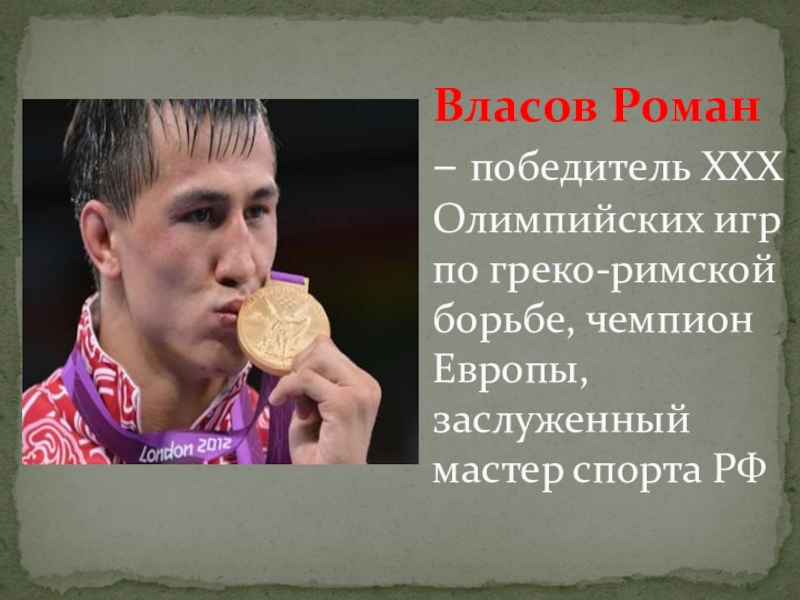 Слайд 21Власов Роман – победитель XXX Олимпийских игр по греко-римской борьбе, чемпион