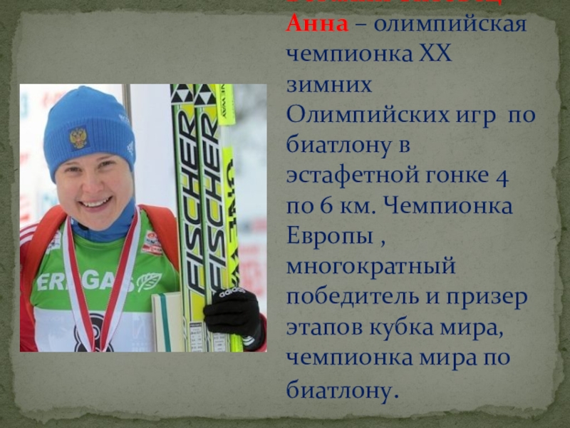 Слайд 20Богалий-Титовец Анна – олимпийская чемпионка XX зимних Олимпийских игр по биатлону