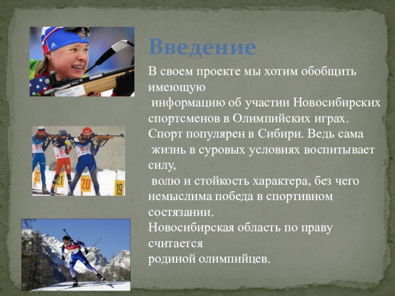 Собрать , обработать и разместить на школьном стенде материал об участии в Олимпийских играх спортсменов Новосибирска и Новосибирской области