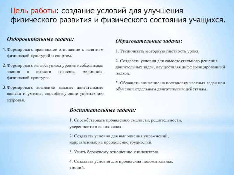 3. Обращать внимание на постановку частных задач при обучении отдельным двигательным действиям.