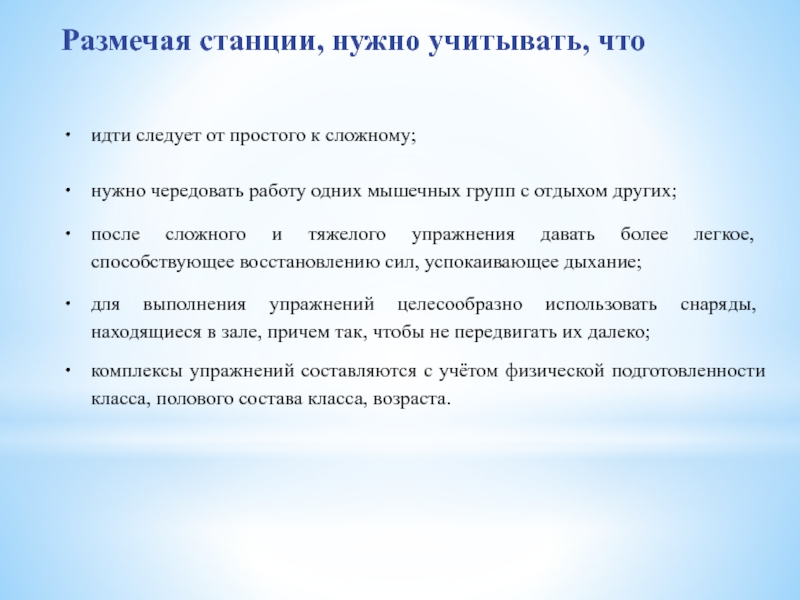 после сложного и тяжелого упражнения давать более легкое, способствующее восстановлению сил, успокаивающее дыхание;