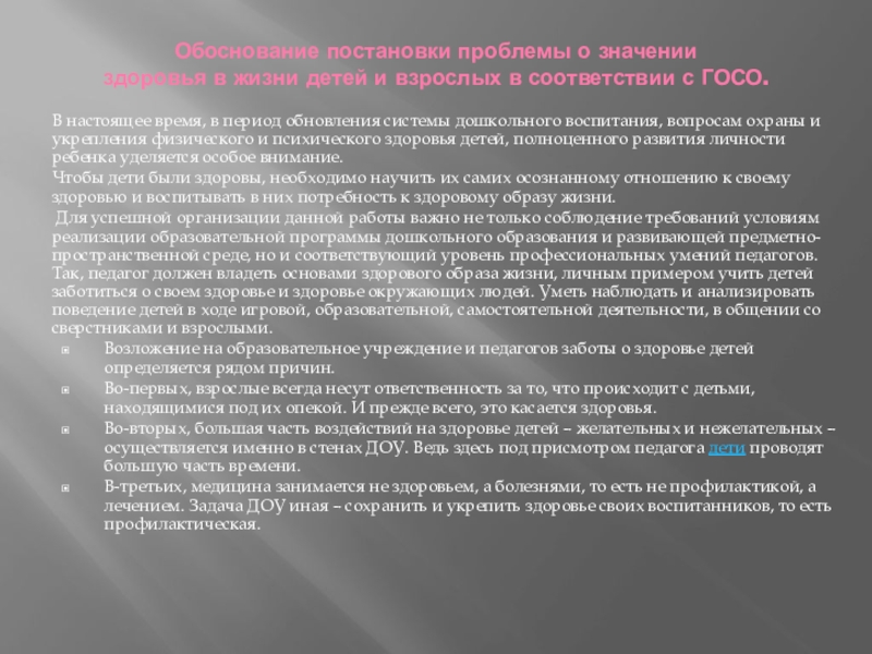 Возложение на образовательное учреждение и педагогов заботы о здоровье детей определяется рядом причин.