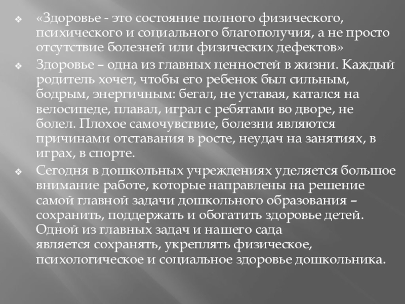 Слайд 11«Здоровье - это состояние полного физического, психического и социального благополучия, а
