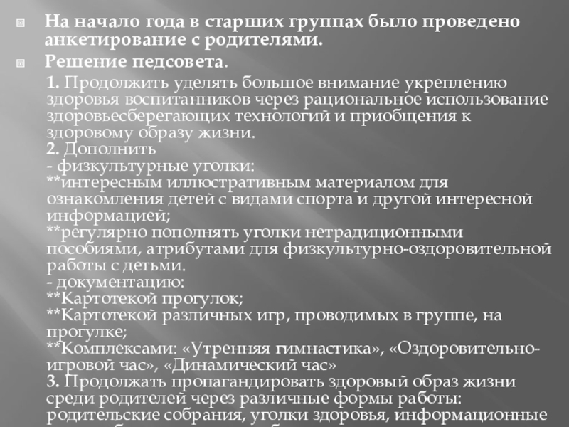 Слайд 21На начало года в старших группах было проведено анкетирование с родителями.