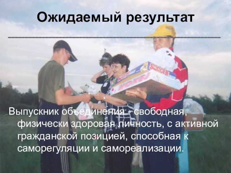 Выпускник объединения - свободная, физически здоровая личность, с активной гражданской