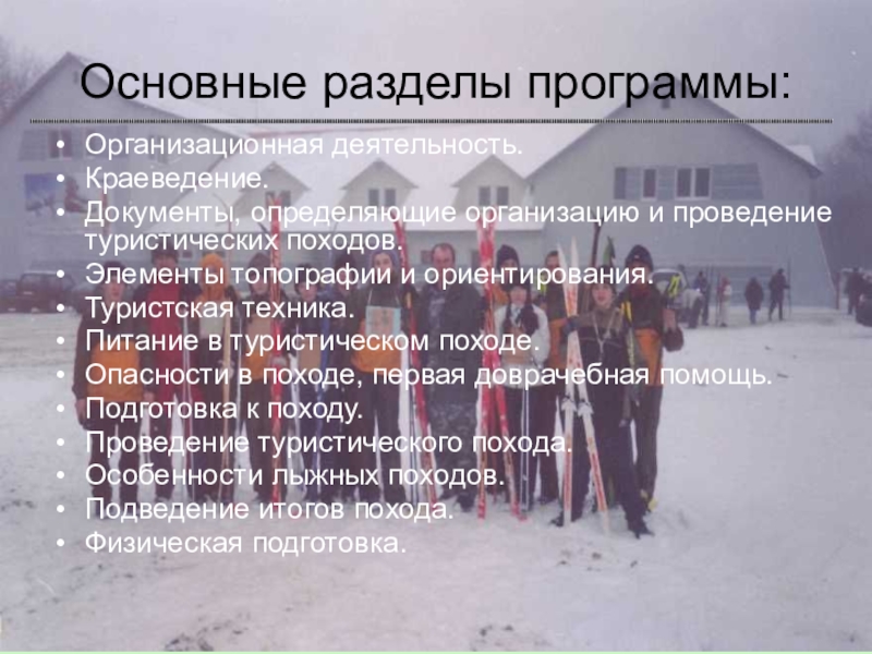 составлена на основе авторских программ Л.И.Тихоновой «Подготовка инструкторов школьного туризма» (I – IV год обучения). - Самара,1998 и
