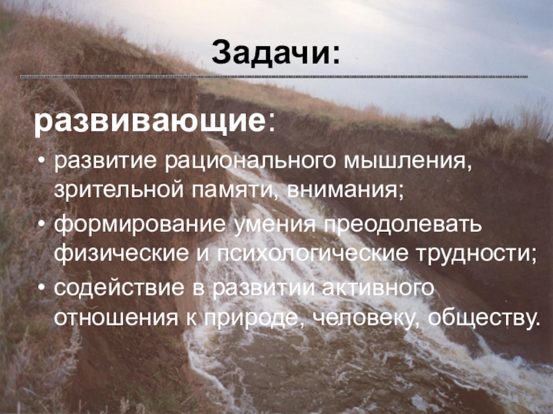 содействие в развитии активного отношения к природе, человеку, обществу.