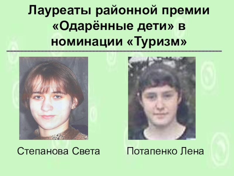 Слайд 17Лауреаты районной премии «Одарённые дети» в номинации «Туризм»
