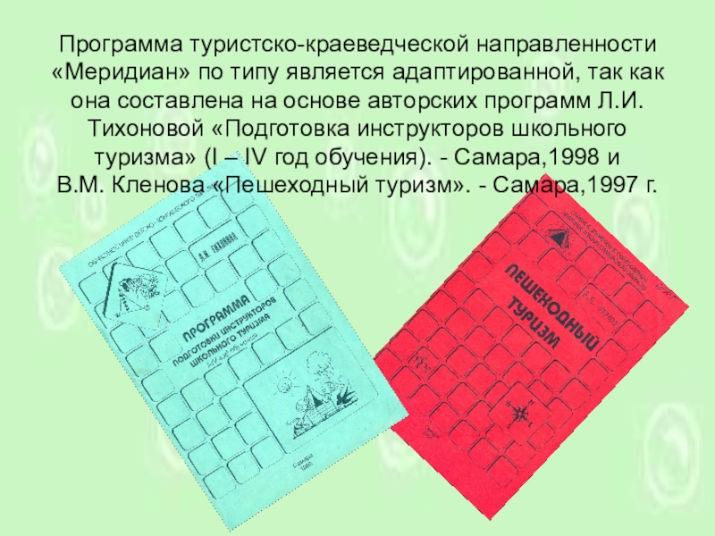 Слайд 2Программа туристско-краеведческой направленности «Меридиан» по типу является адаптированной, так как она