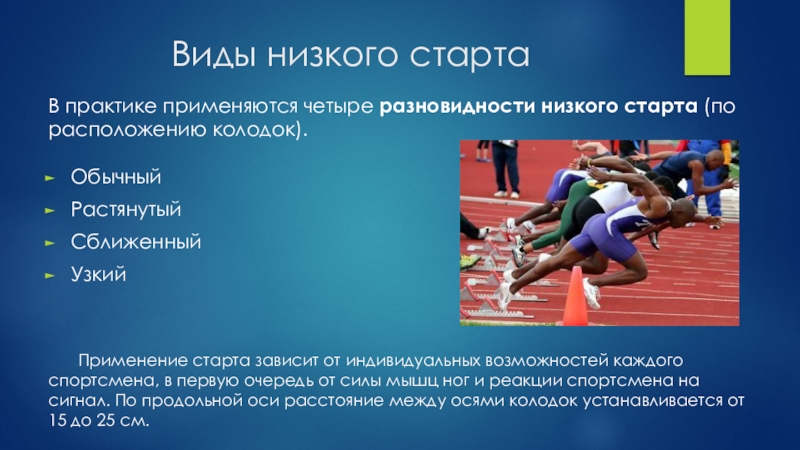 Слайд 8Виды низкого старта