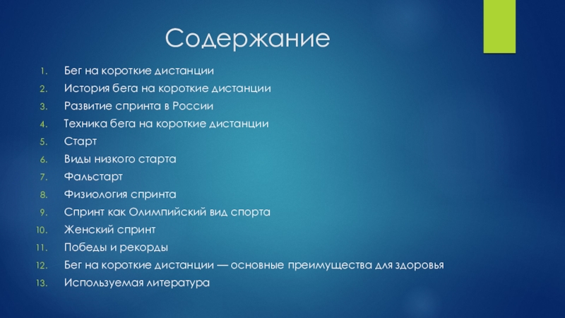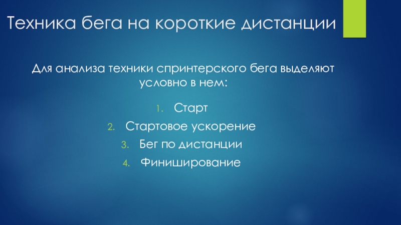 Слайд 3Бег на короткие дистанции (спринтерский бег)