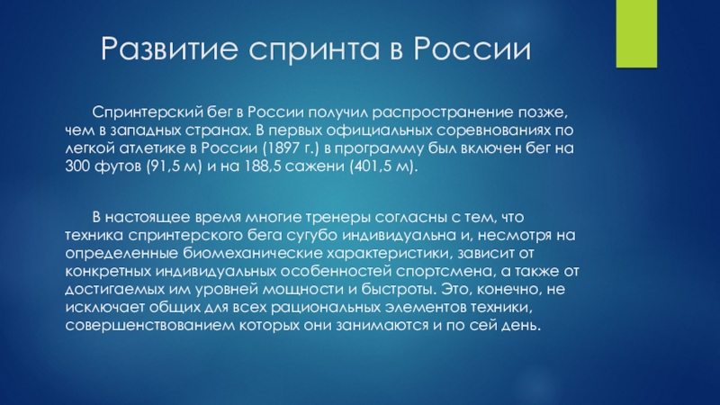 Слайд 5Развитие спринта в России