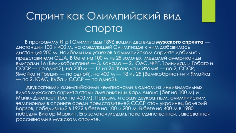 Слайд 12Спринт как Олимпийский вид спорта