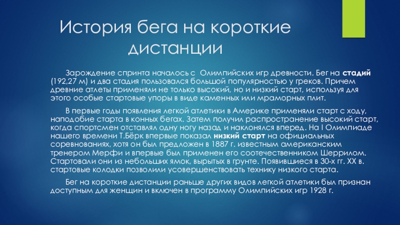 Слайд 4История бега на короткие дистанции