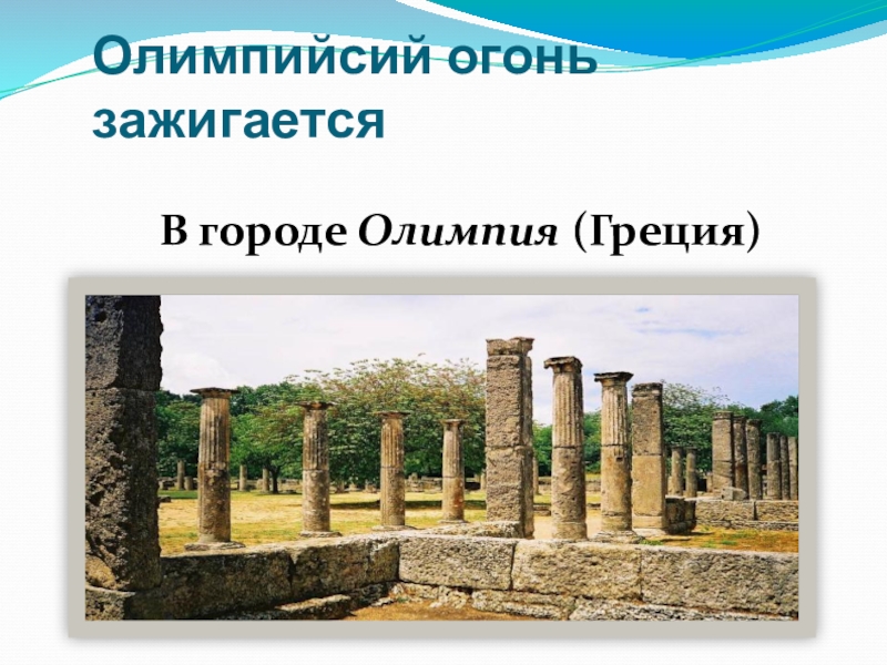 Олимпийсий огонь зажигается   В городе Олимпия (Греция)