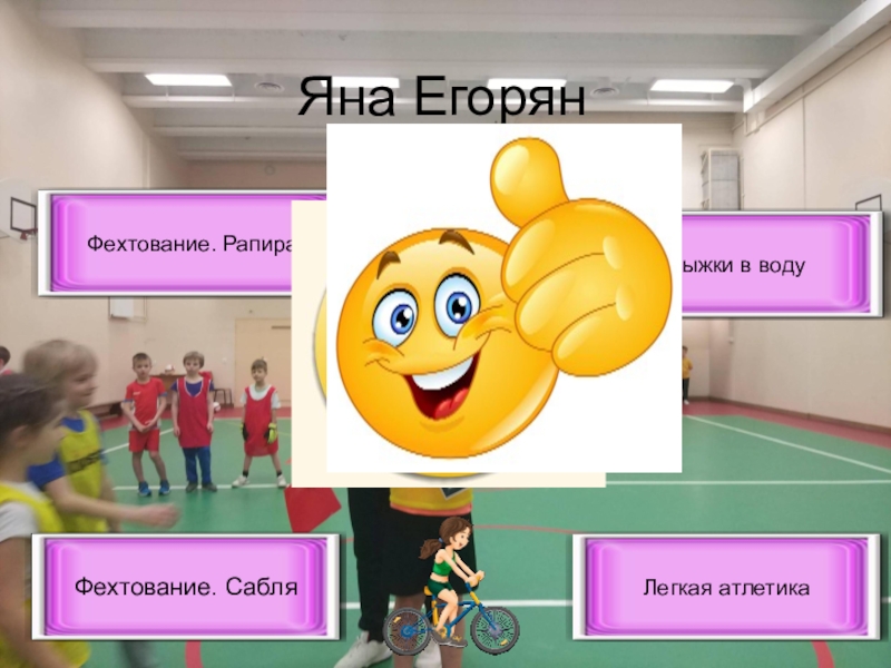 Яна ЕгорянФехтование. СабляФехтование. РапираПрыжки в водуЛегкая атлетика
