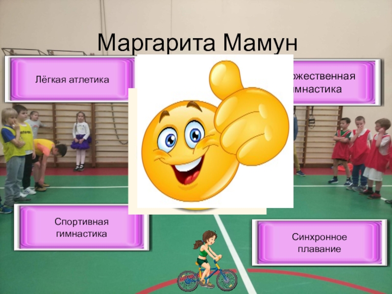 Маргарита МамунХудожественнаягимнастикаСпортивнаягимнастикаЛёгкая атлетикаСинхронноеплавание