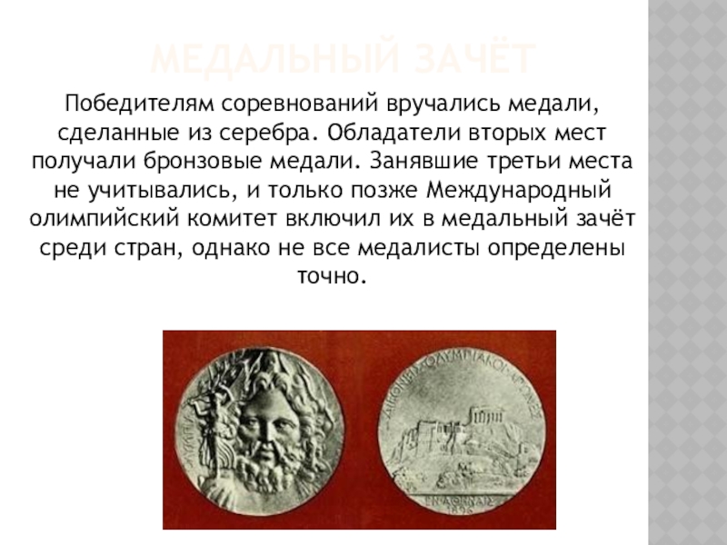 получали бронзовые медали. Занявшие третьи места не учитывались, и только позже Международный олимпийский комитет включил их в медальный зачёт среди стран, однако не все медалисты определены точно.