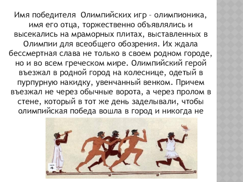 Слайд 3Имя победителя Олимпийских игр – олимпионика, имя его отца, торжественно объявлялись