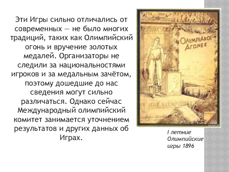 Слайд 6Эти Игры сильно отличались от современных — не было многих традиций,