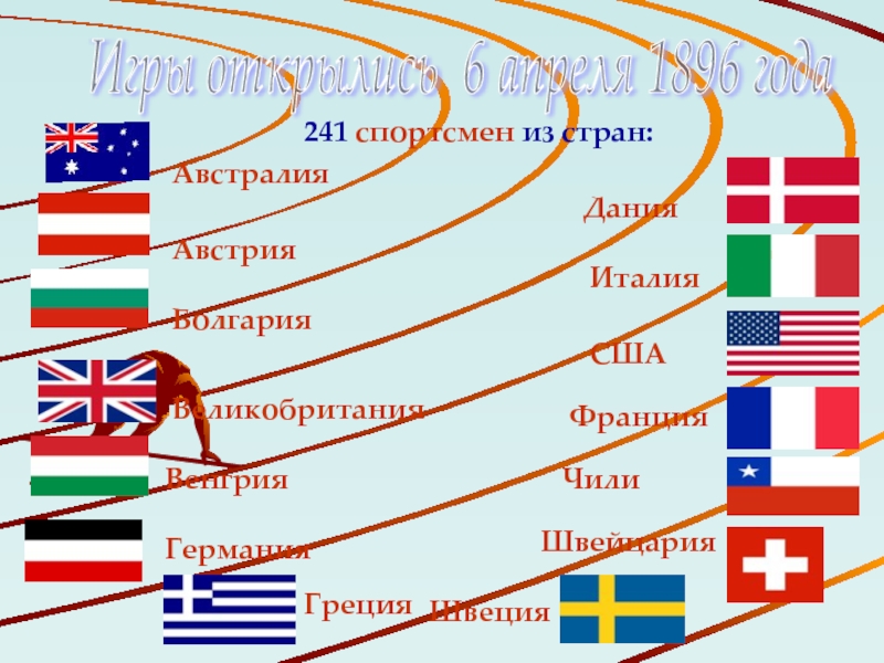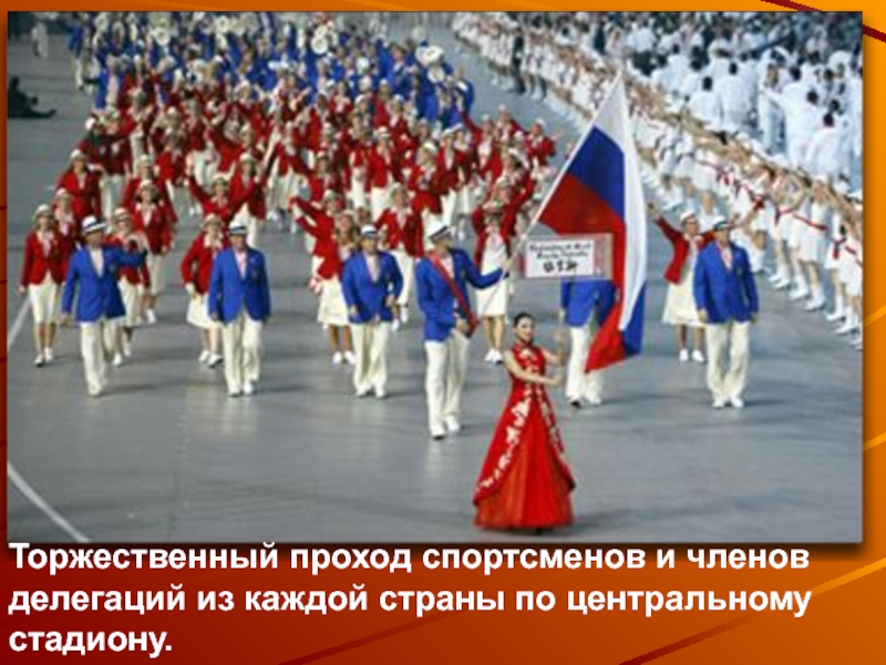 Спортсмены принимающей страны, затем спортсмены всех стран по алфавиту