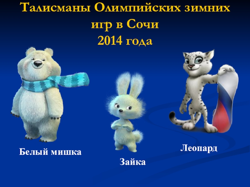 Слайд 18Талисманы Олимпийских зимних игр в Сочи
