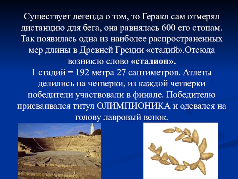 Слайд 4Существует легенда о том, то Геракл сам отмерял дистанцию для бега,