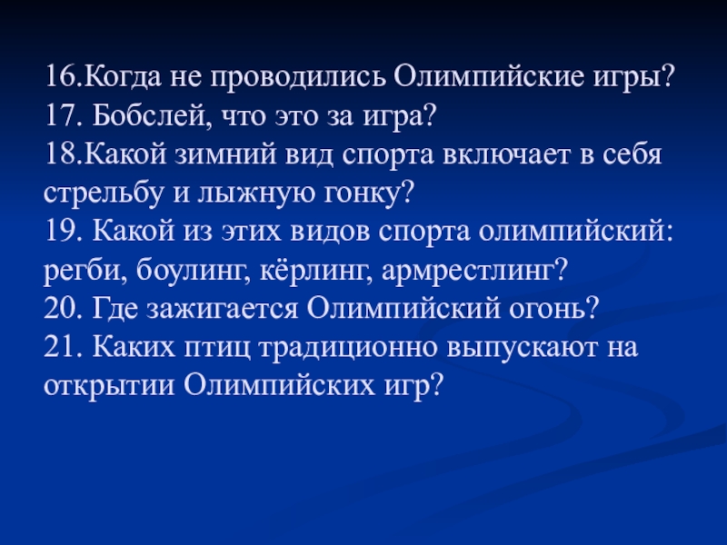 Слайд 2116.Когда не проводились Олимпийские игры?